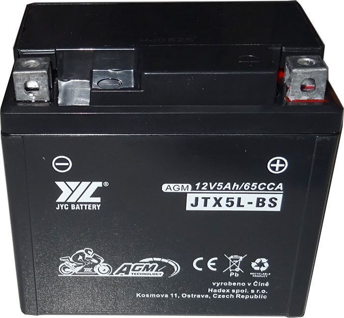 Olověná baterie AGM pro motocykly, bezúdržbová, hermeticky uzavřená.Specifikace:Typ baterie: olověná AGMJmenovité napětí: 12VKapacita: 5AhStartovací proud: 65APolarita: praváRozměry (DxŠxV): 113×70×106mmHmotnost: 1,7kg