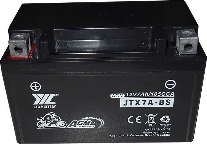 Olověná baterie AGM pro motocykly, bezúdržbová, hermeticky uzavřená.